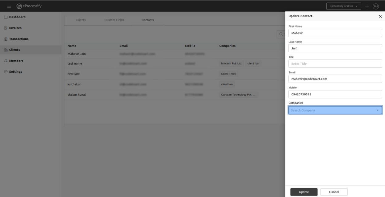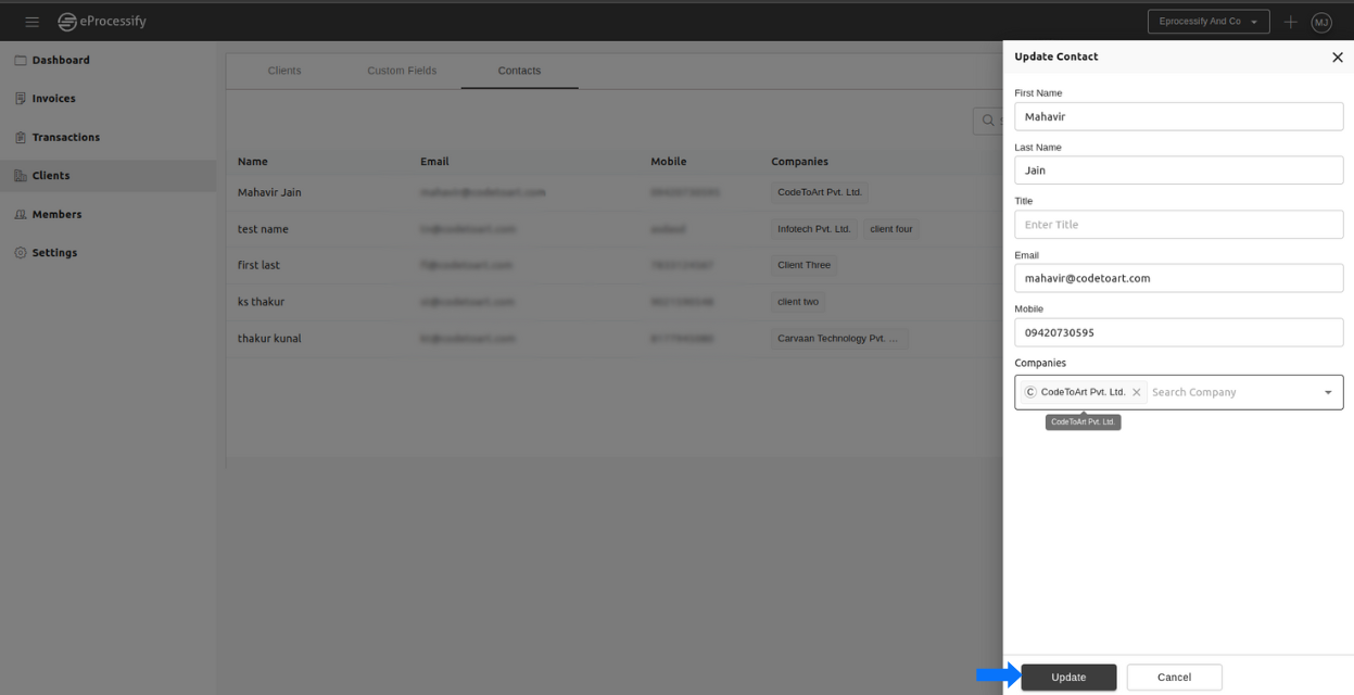 **Step 3:**                                                                                                                                                                                         Now, choose the contact you want to assign to the client and click on the 'edit' option.