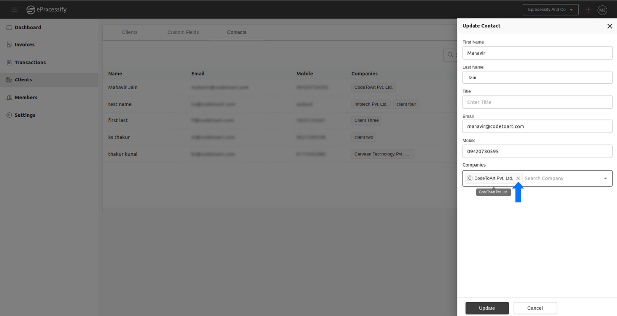 Delete the client from the companies to unassign a contact and update it.                                                                                                                                                                                   &#x20;